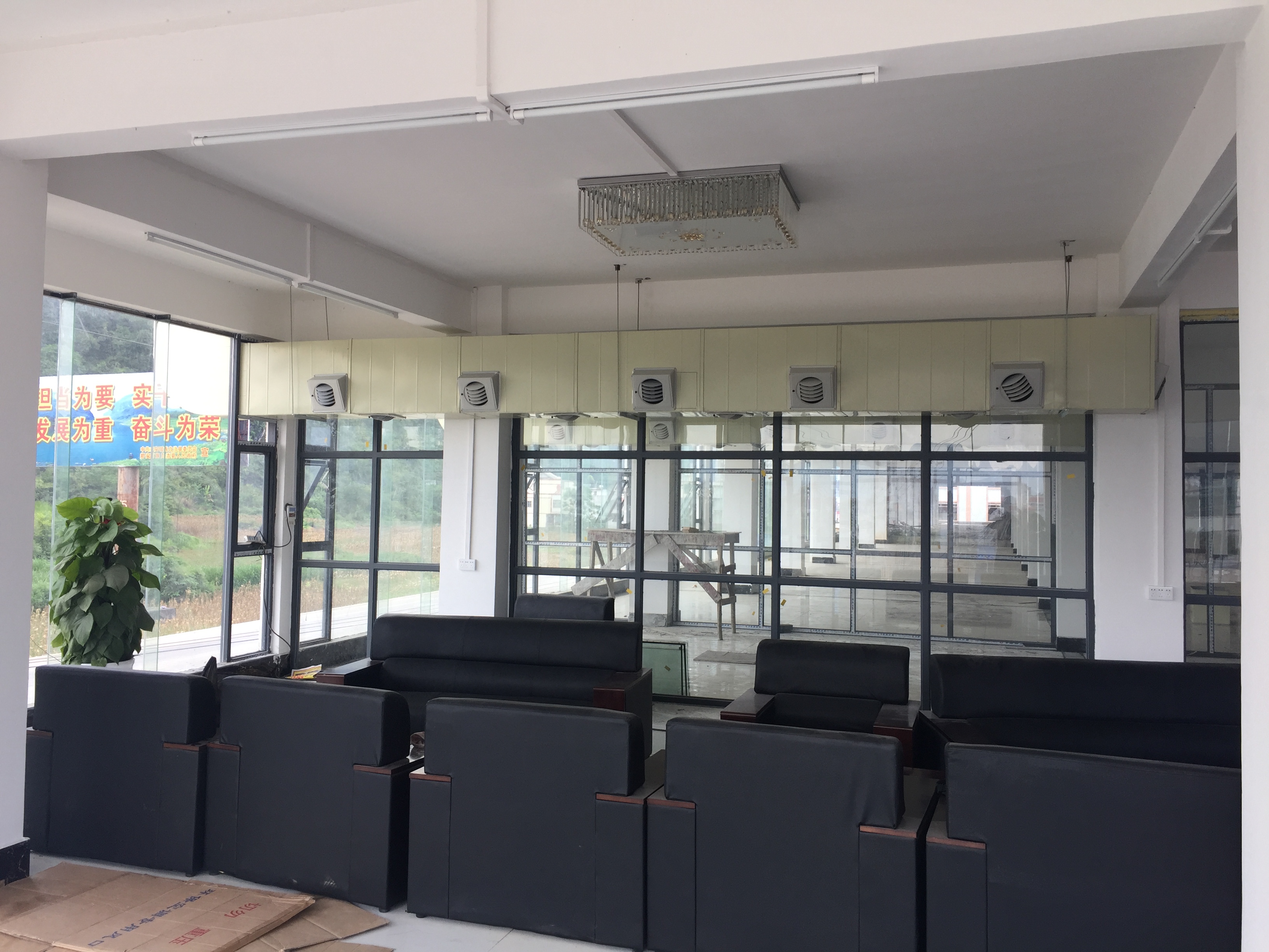 該品牌在中山市有5個分廠進(jìn)行生產(chǎn)。產(chǎn)量是跟上去了,人員一開始也較穩(wěn)定,但各車間仍面臨一個繞不過去的環(huán)境問題——車間為保障工人生產(chǎn)之通風(fēng)降溫難題—制衣車間滿滿的衣車發(fā)熱、密集的生產(chǎn)工人熨燙所揮發(fā)的蒸氣,加之夏季室外天氣炎熱。在試裝了一個分廠車間后,陸陸續(xù)續(xù)5個分廠車間全部裝上了環(huán)??照{(diào),化解了傳統(tǒng)風(fēng)扇沒有直接降溫效果,不合時宜,而普通空調(diào)初裝費(fèi)用昂貴,運(yùn)行費(fèi)用高昂。因高溫所引起的招工留人的難題。該公司五個分廠總計(jì)安裝環(huán)??照{(diào)300臺
