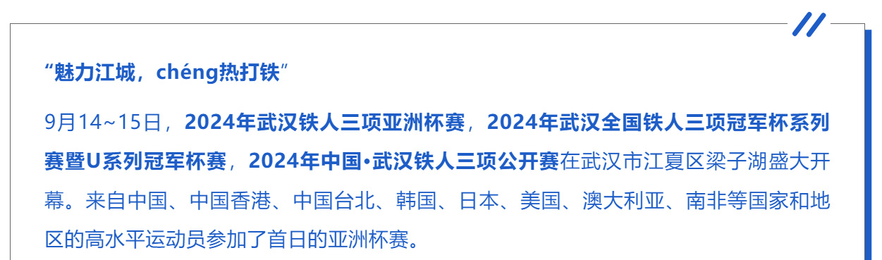 鐵人三項被國際奧委會列為奧運會比賽項目,也是世界軍體大會、亞運會等賽事的正式比賽項目。鐵人三項將游泳、自行車和跑步這三項運動相結(jié)合,是一項高強度、長時間的耐力運動,極為考驗運動員的體力和意志力。舉辦這樣一項大型國際重大賽事,對于賽事主辦方、承辦方而言,都面臨著不小的考驗。